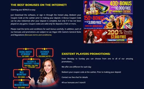 All of these bonuses have Terms and Conditions that apply to each offer. Make sure to have a look at the terms once you set up your Las Vegas USA account.