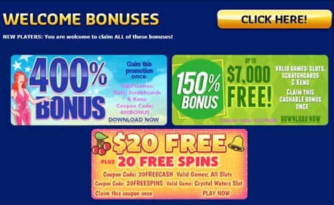 To claim the coupon you can use either the 20FREECASH or 20FREESPINS bonus code. The cash is available on all slot games whereas the free spins are earmarked for Crystal Water Slot.