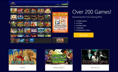 The unique series of slot machines enjoys touched-up graphics, more game features, and a busier release schedule. The casino has an extensive selection of new titles and a very special bonus to cover your adventures in these games. A special bonus offers to match your deposit by 200% and throw in free spins for Achilles Deluxe, the latest Realtime Gaming available to players.